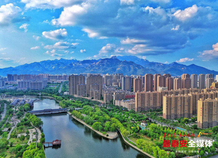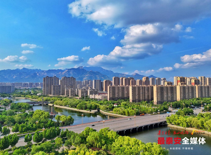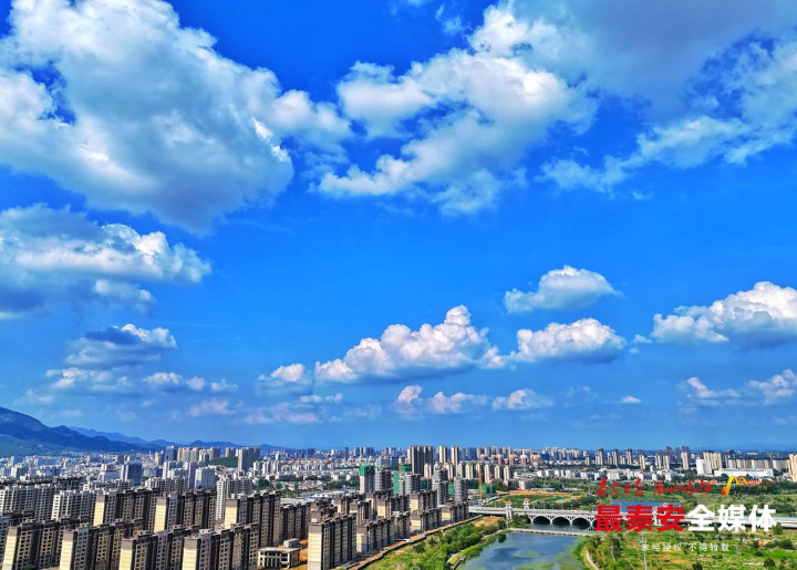 6月30日,盛夏时节的泰城,湛蓝天空中,云朵舒展飘逸,蓝天白云萦绕在泰城山水之间,构成了一幅醉人的夏日画卷,为泰城增添了别样的浪漫与诗意。